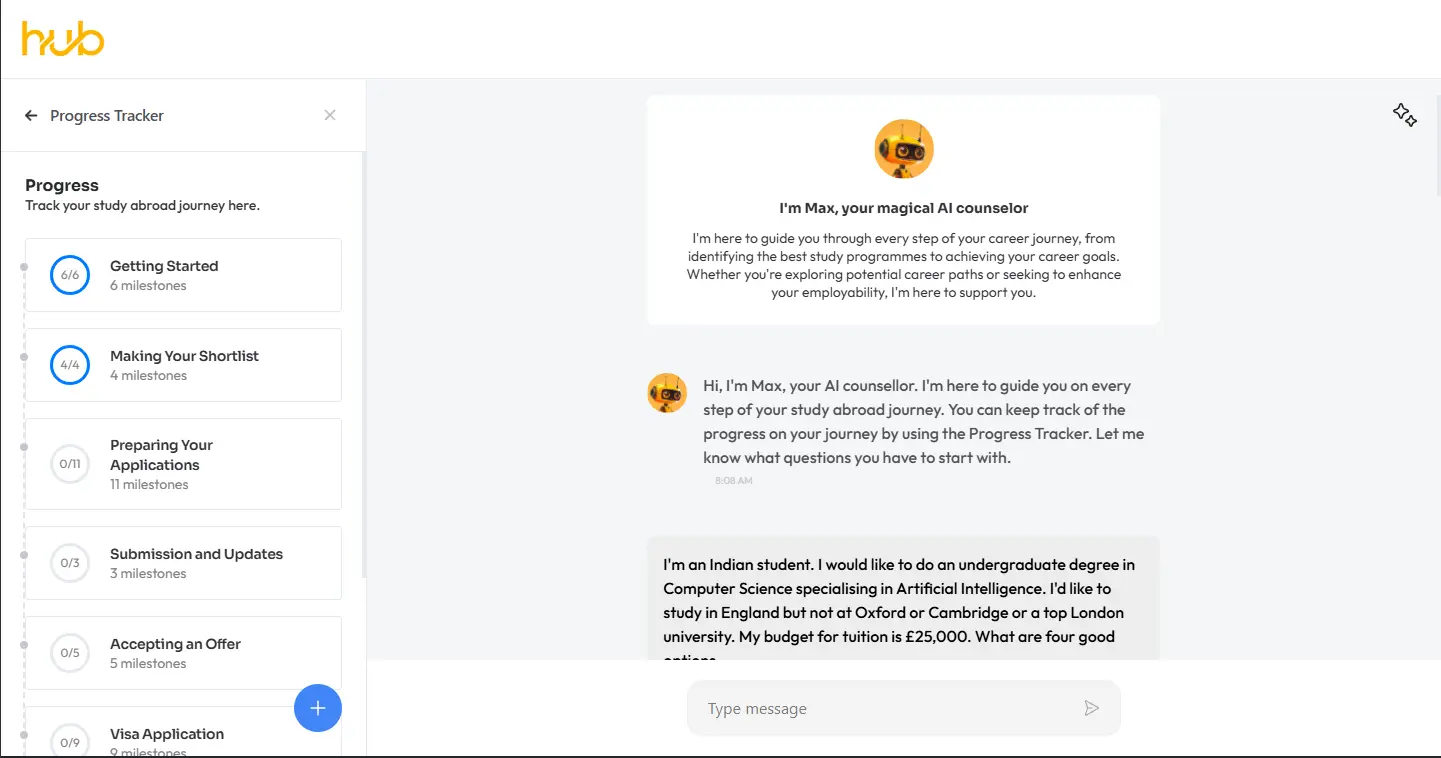 Max is trained by expert counsellors to guide you through every stage of your study abroad journey — from shortlisting universities to navigating visa applications and settling in abroad. Ask anything, get a real answer.